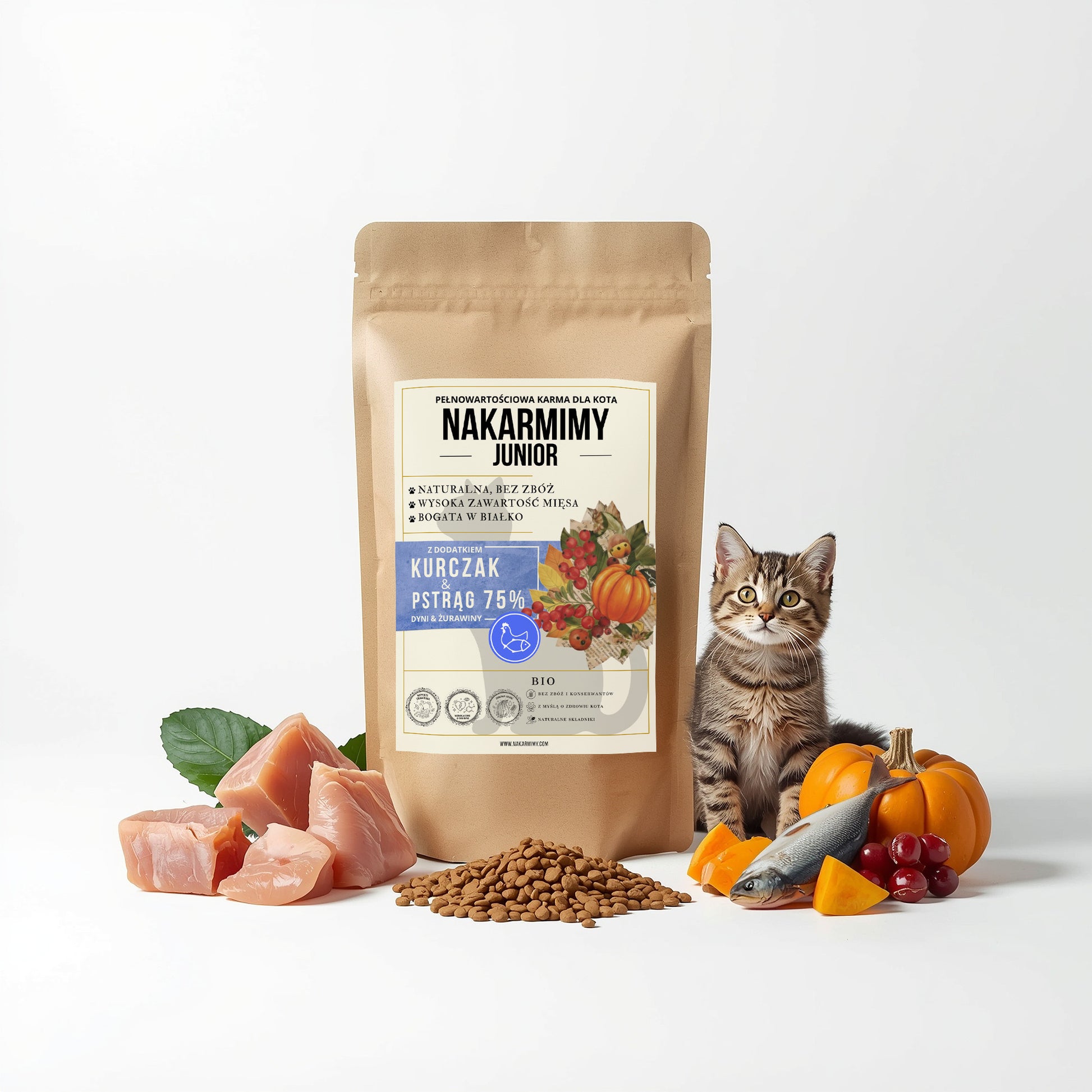 Karma sucha Kot Junior NAKARMIMY – Kurczak i Pstrąg 75% Dynia i Żurawina