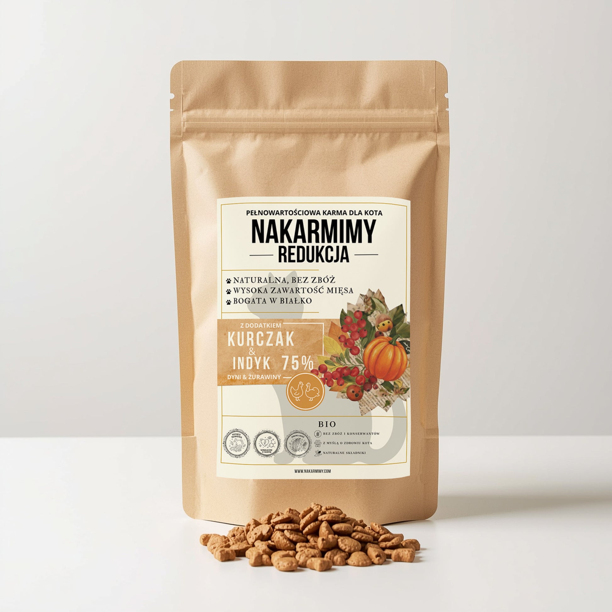 Karma sucha Redukcja NAKARMIMY – Kurczak i Indyk 75% Dynia i Żurawina